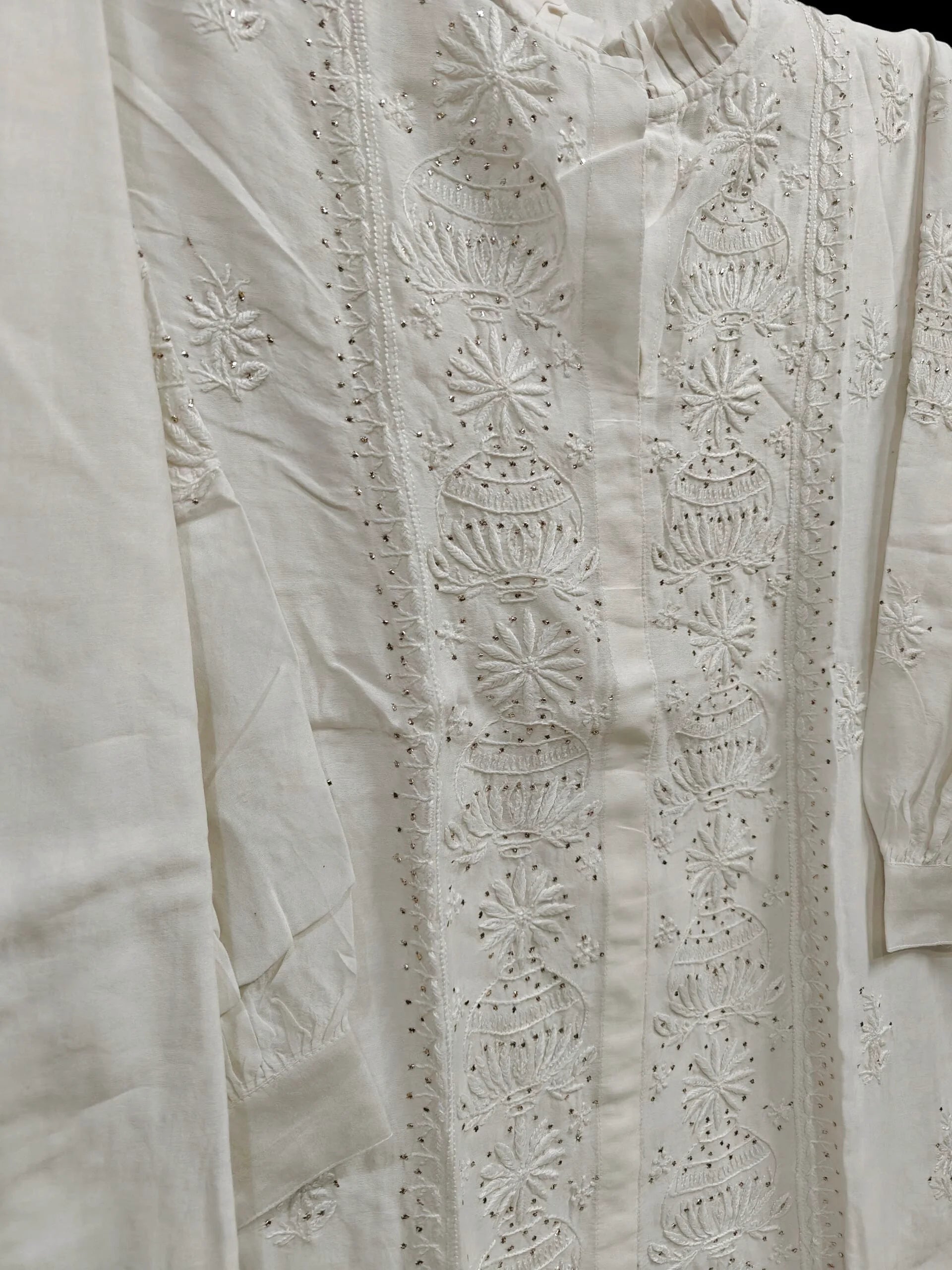 Embroidery: Handcrafted Chikankari work with Mukesh Kamdani embellishments