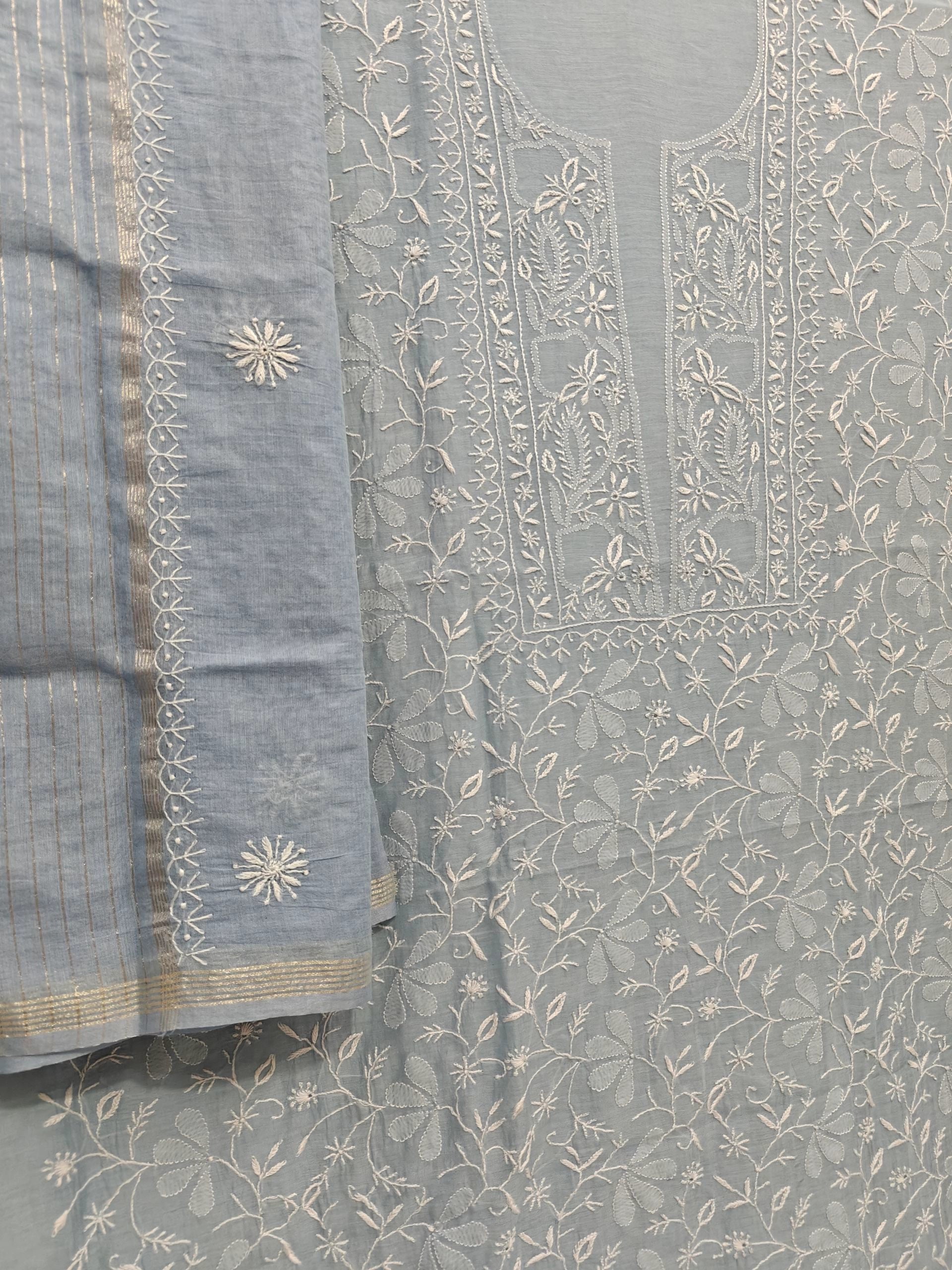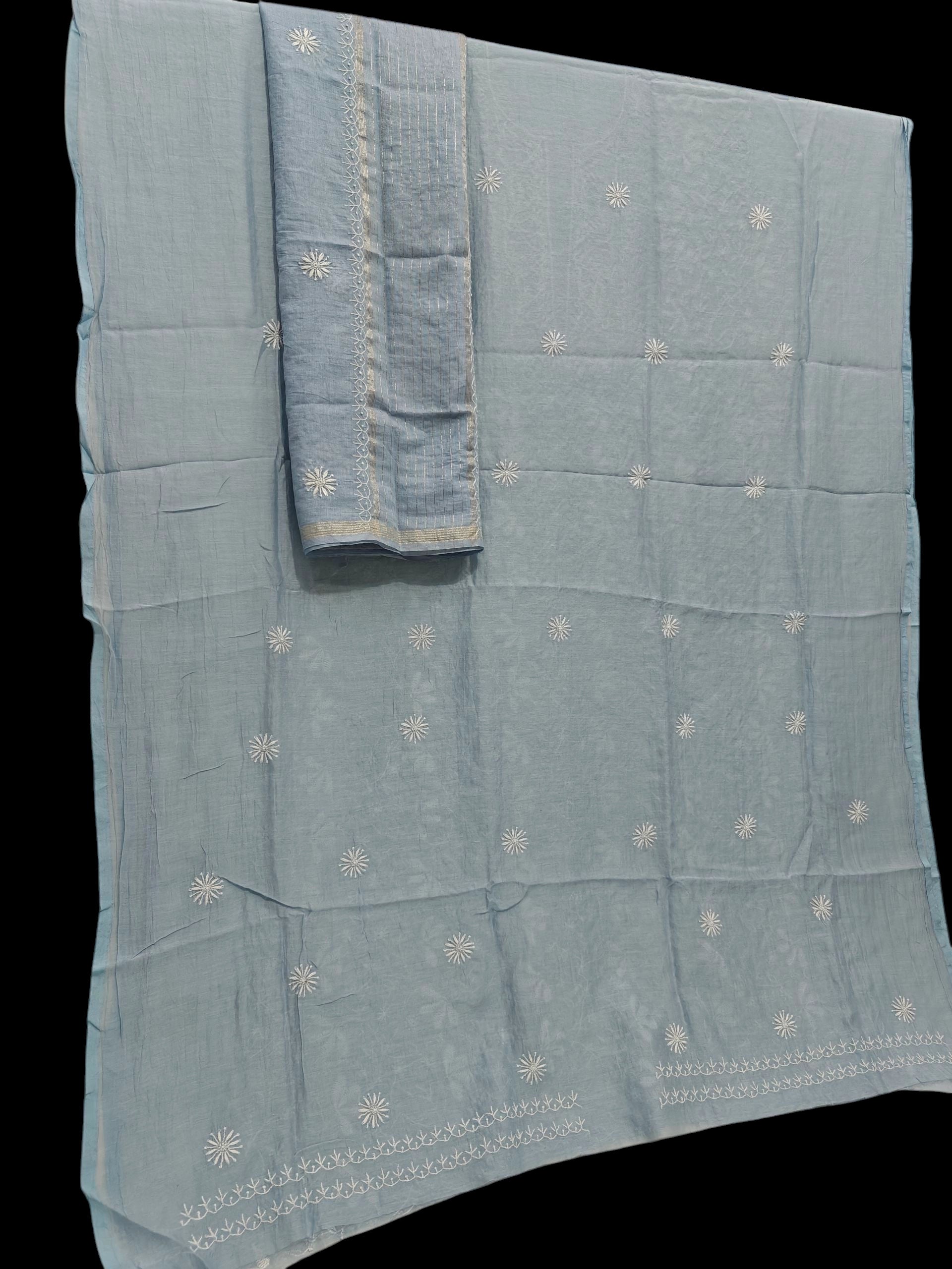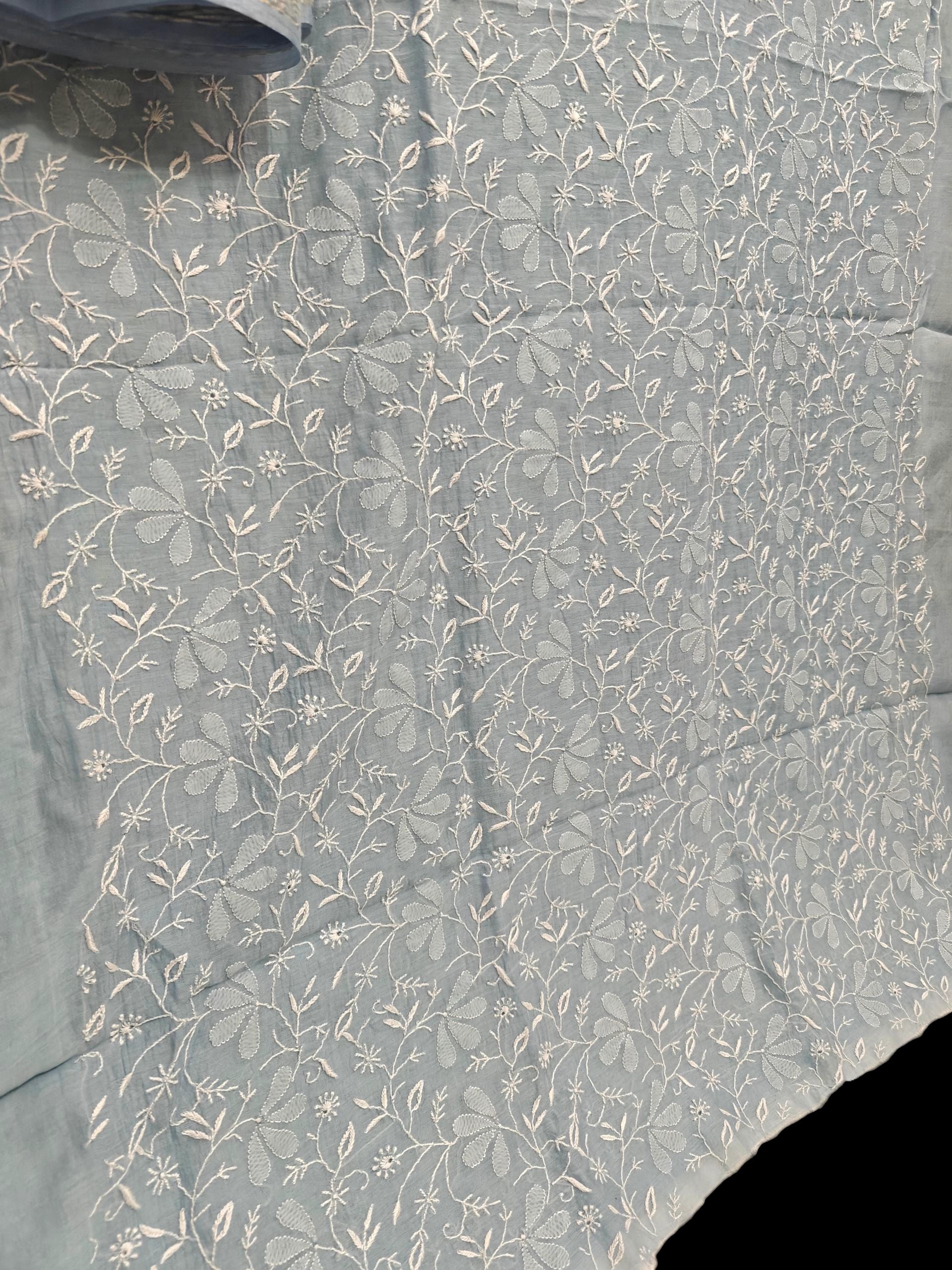 Embroidery: Intricate hand-embroidered Chikankari with floral and geometric motifs