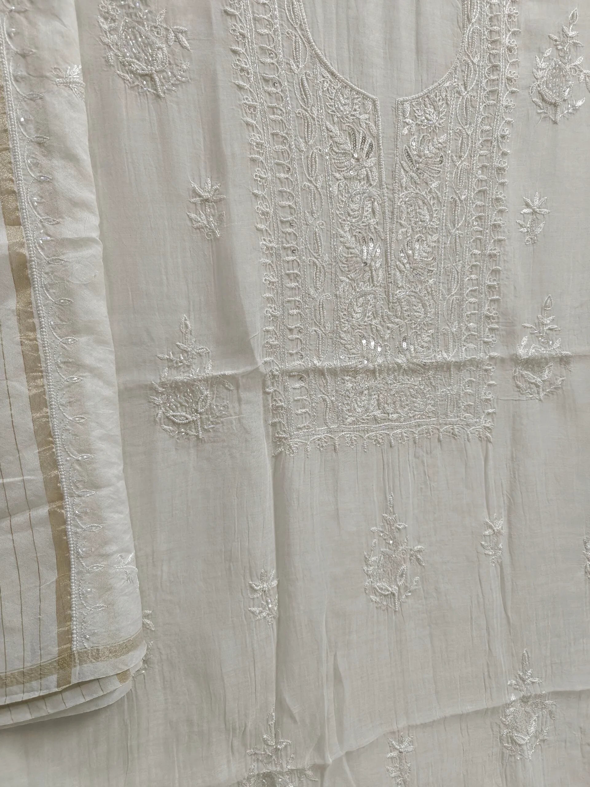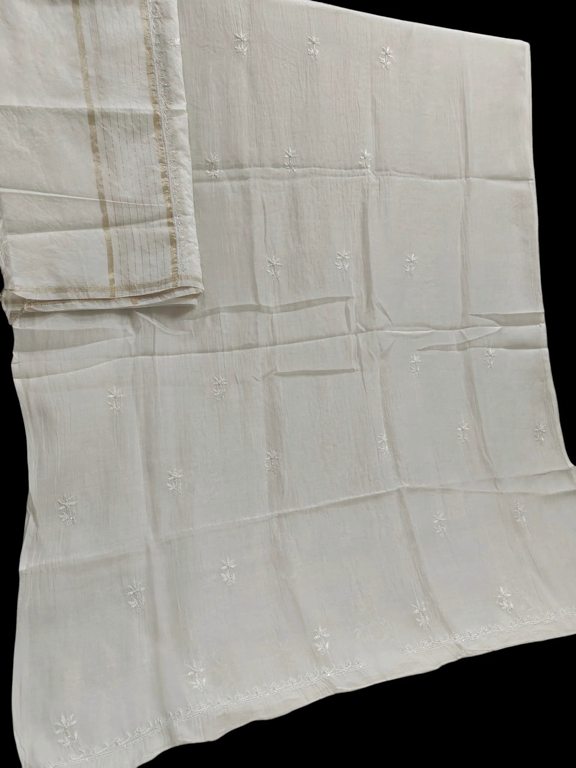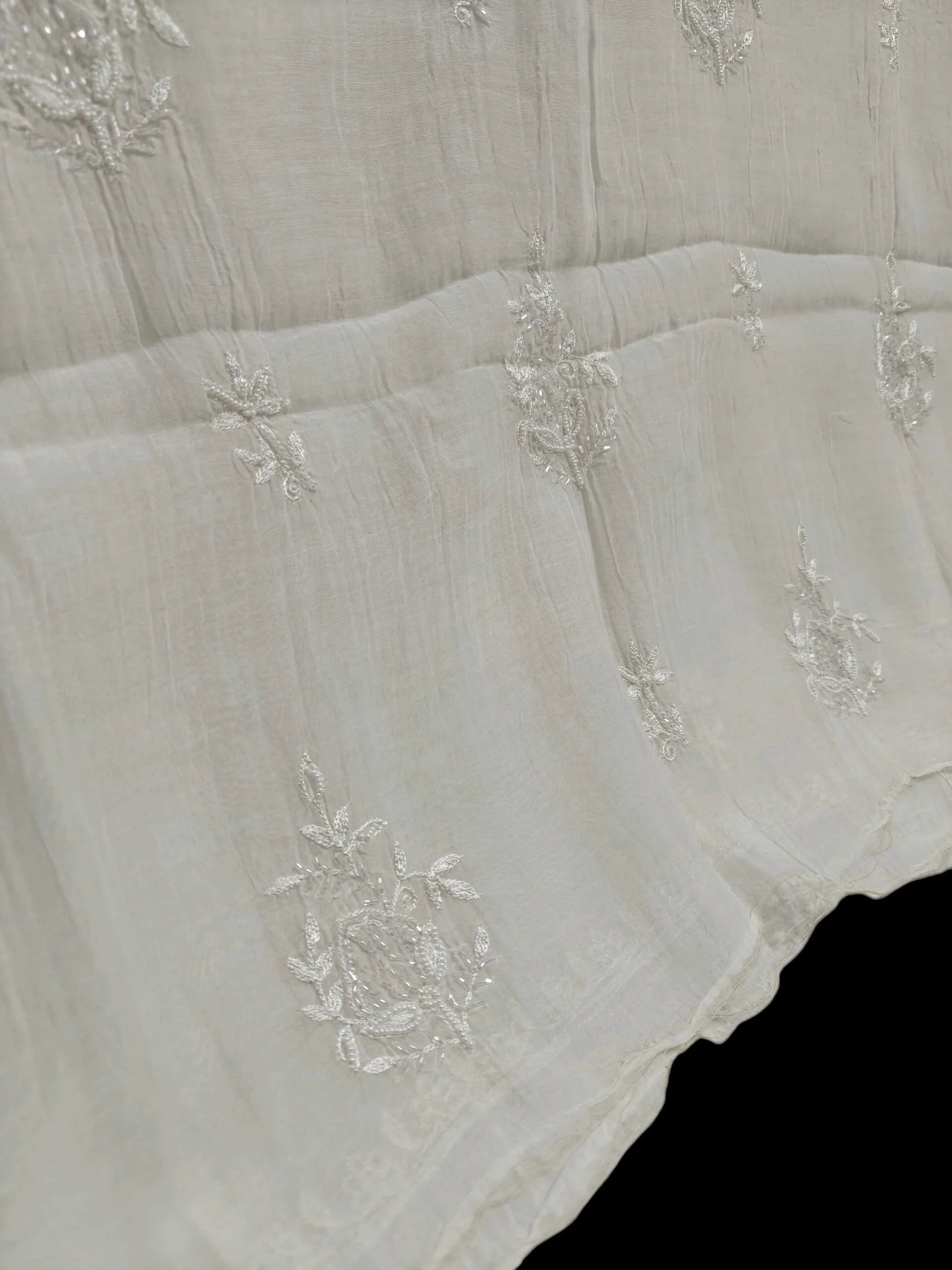 Embroidery: Handcrafted Chikankari with intricate Moti Cut Dana embellishments