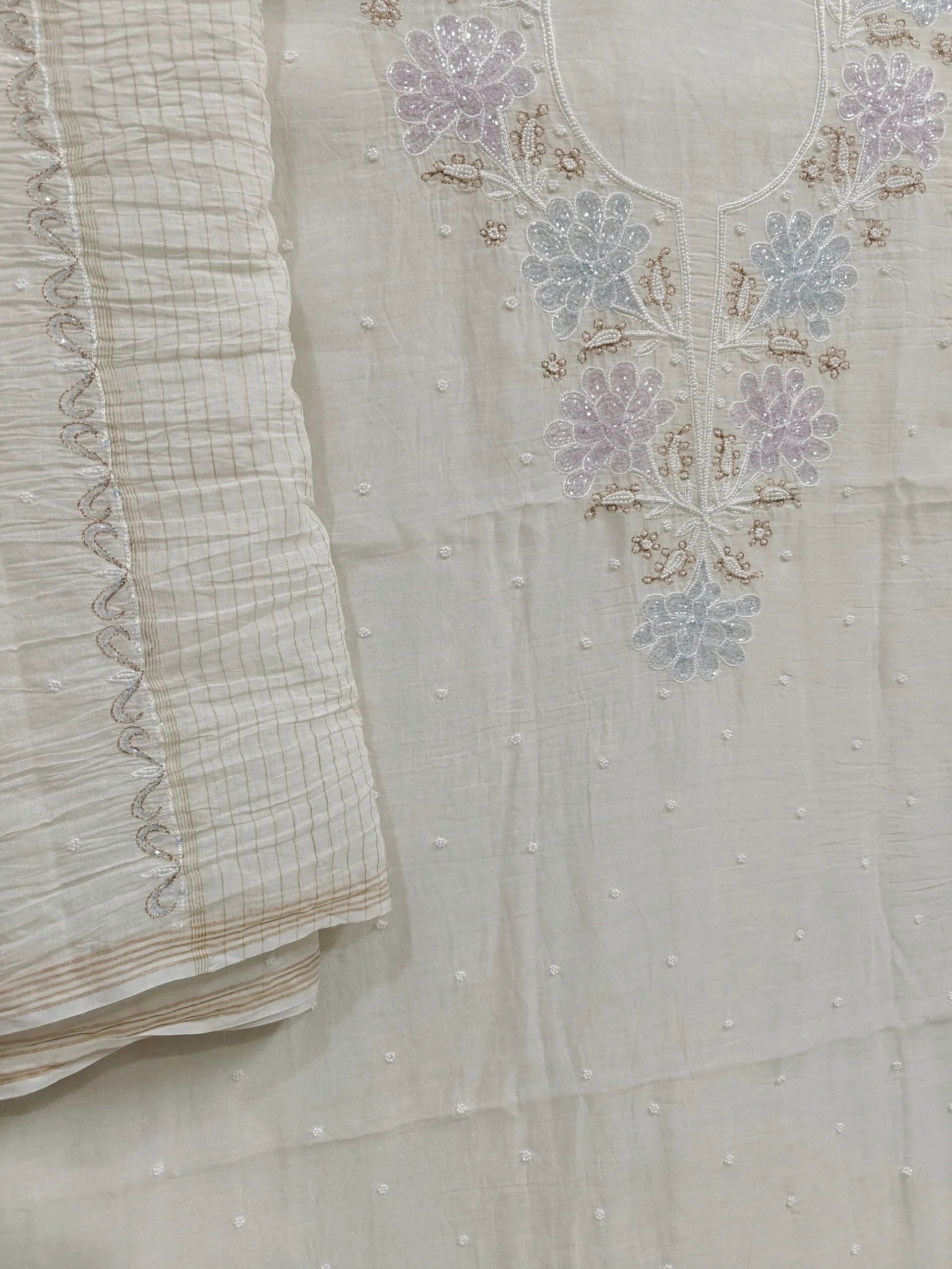 Floral Chikankari Suit with Moti Cut Dana work– Un-Stitched | Pure Mul Fabric