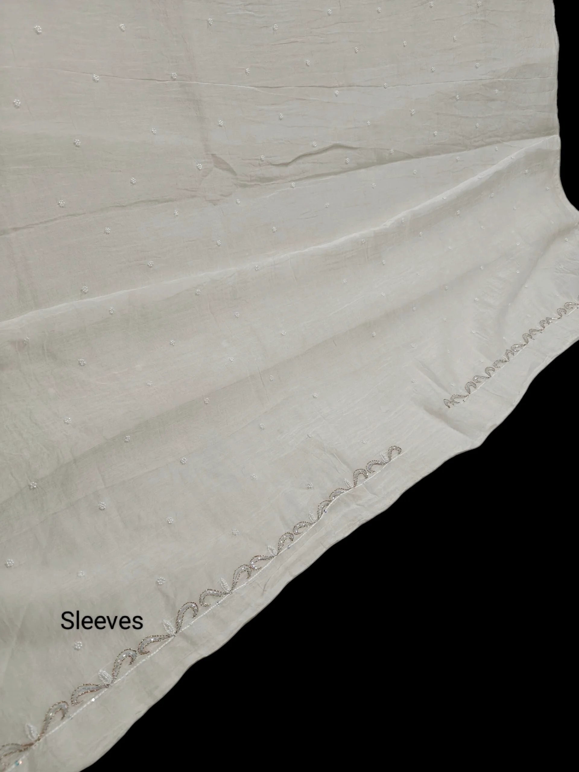 Embroidery: Handcrafted Chikankari work with Colored Moti Cut Dana embellishments