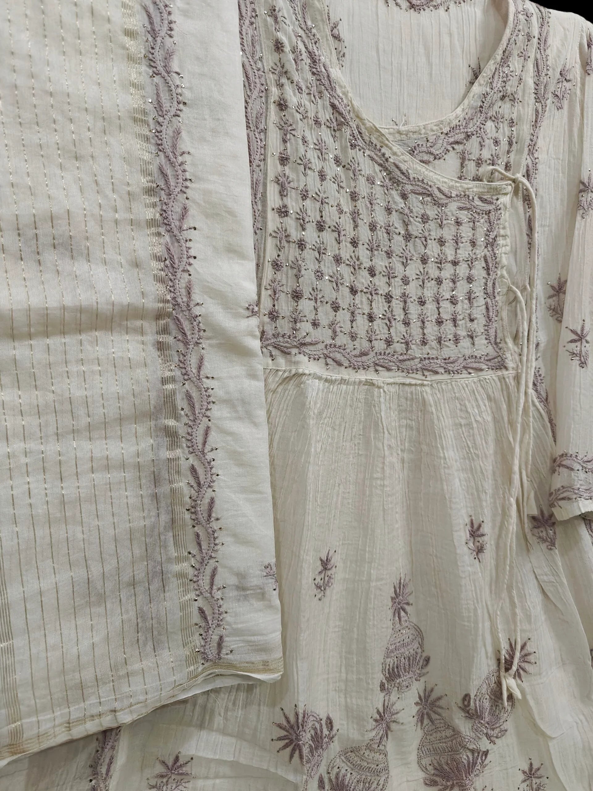 Embroidery: Intricate hand-done Chikankari with delicate Mukesh Kamdani embellishments