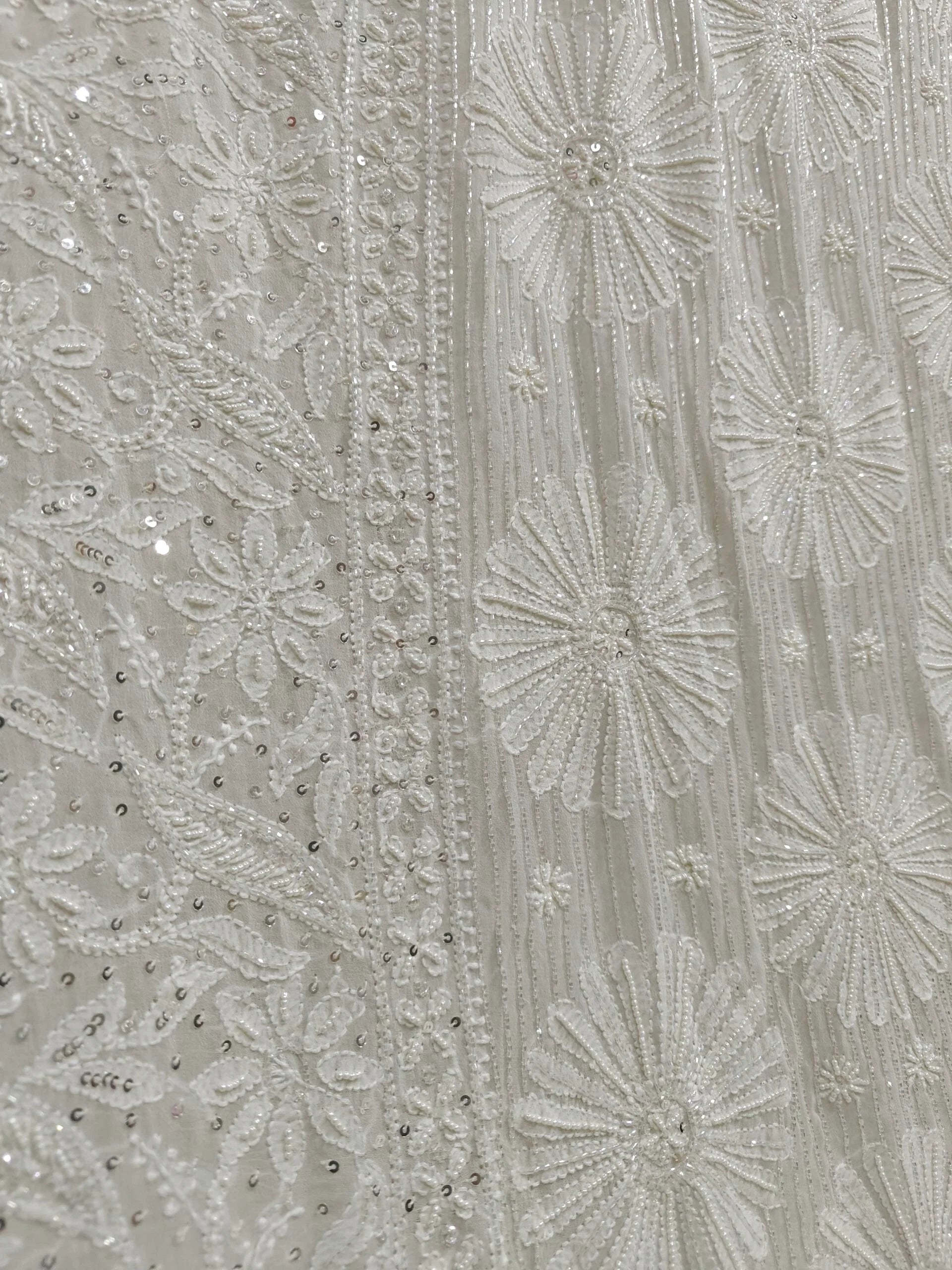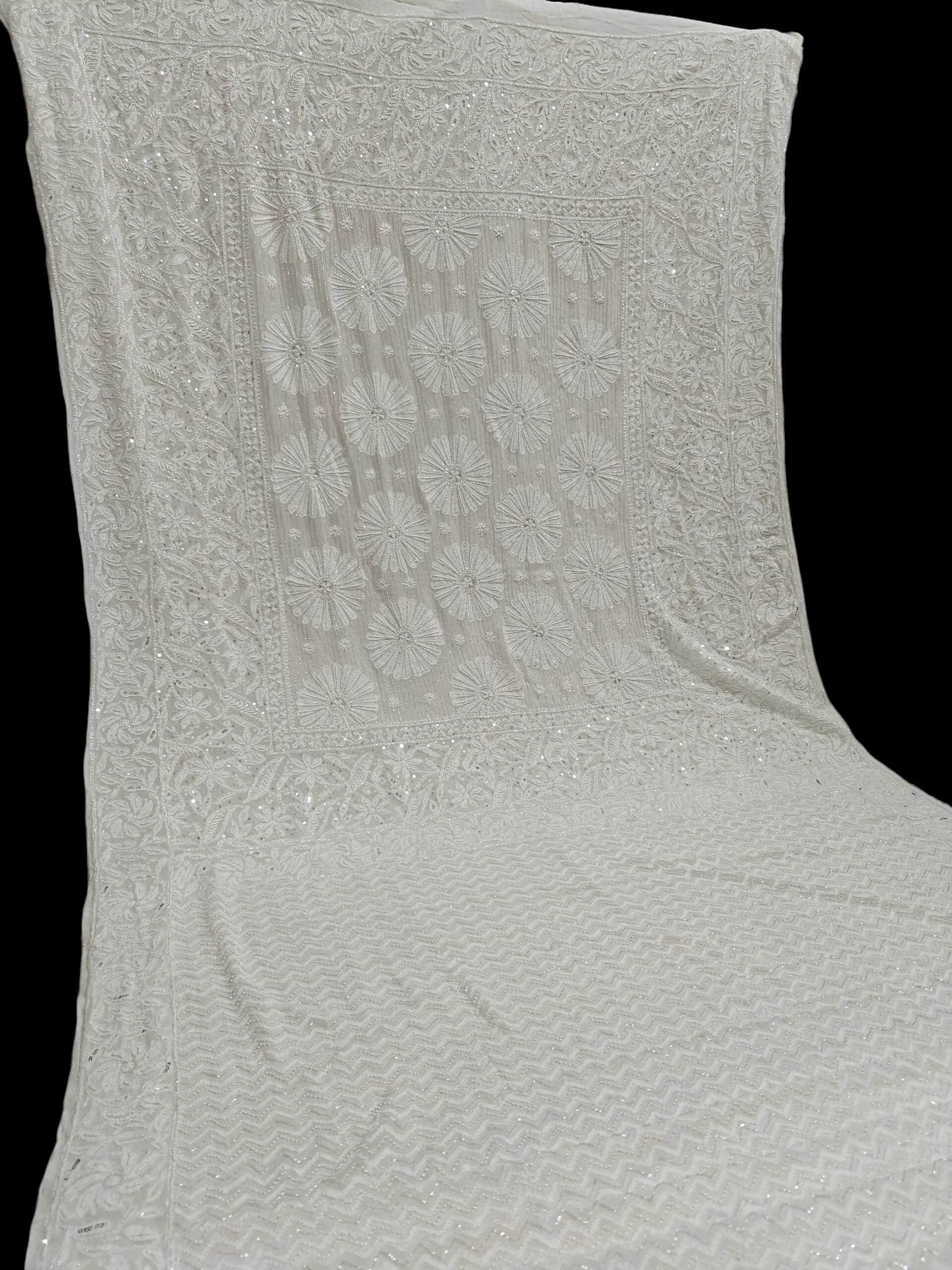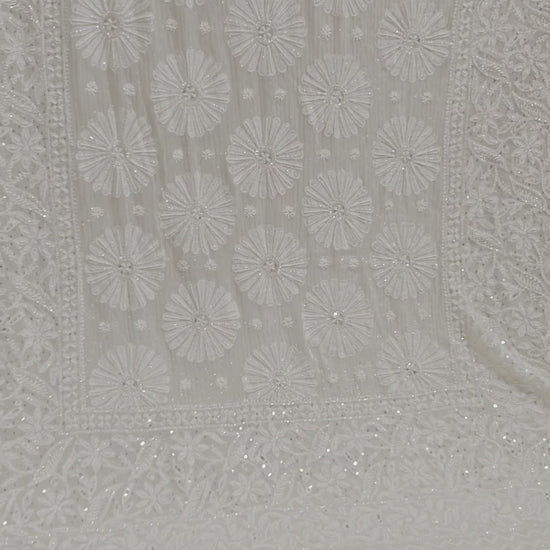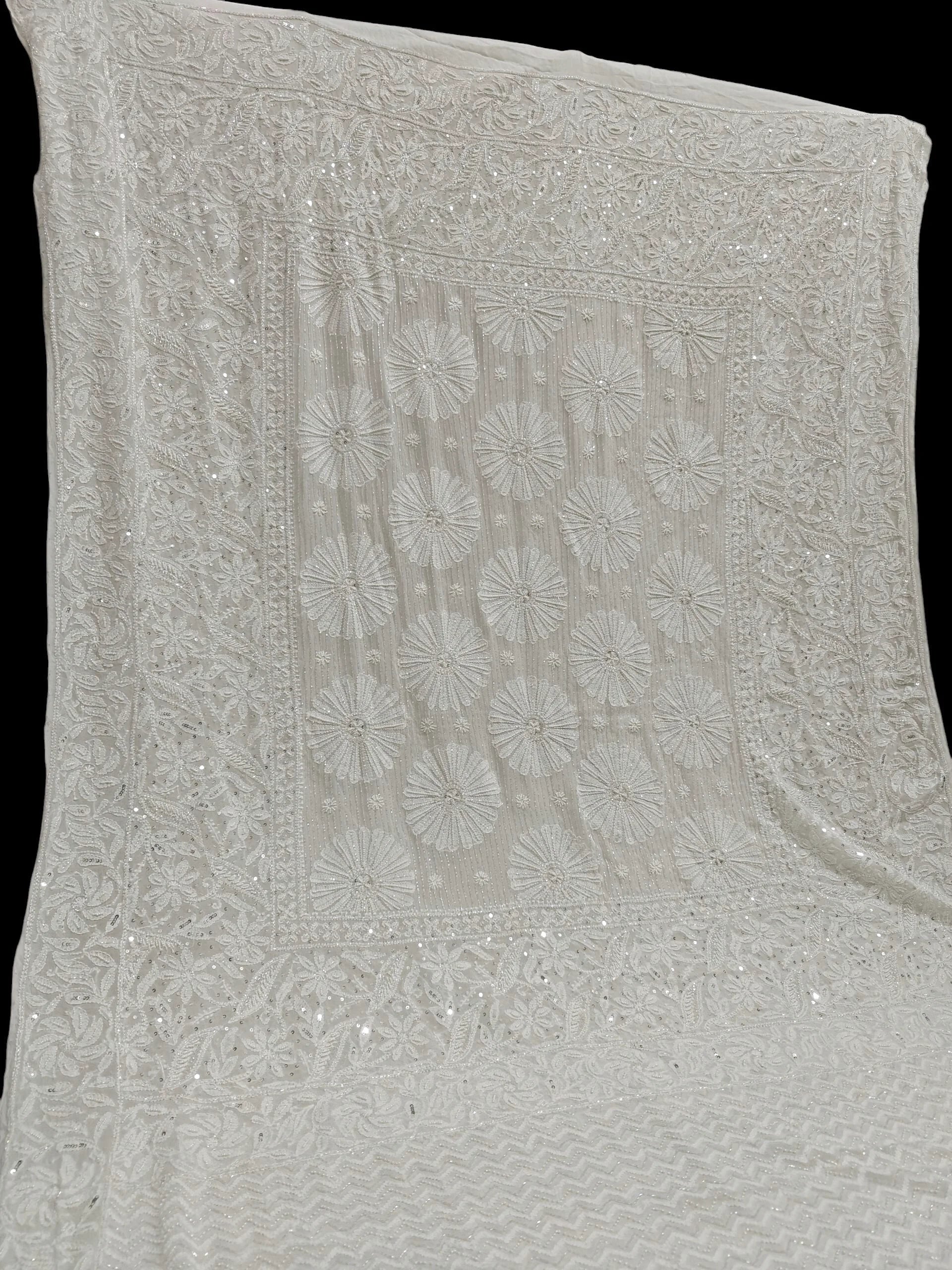 Ivory Georgette Chikankari Saree with Radiant Floral Embellishments