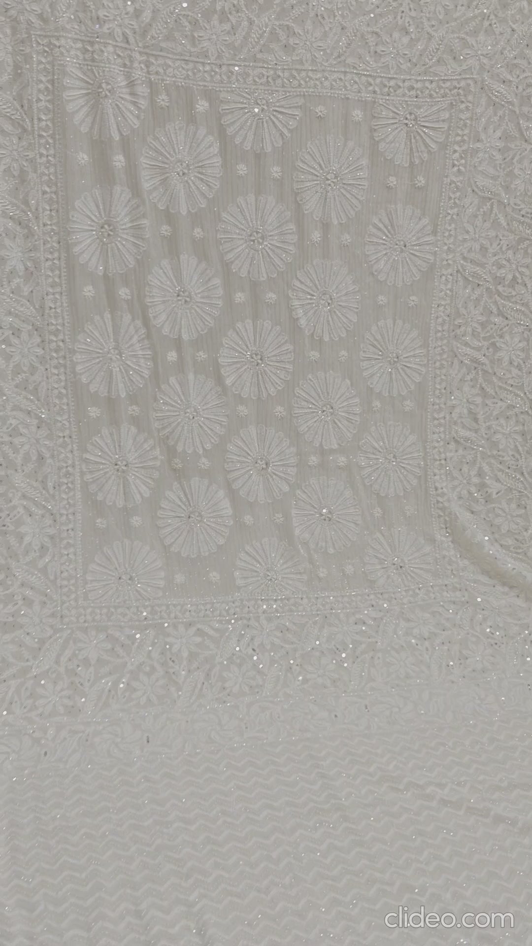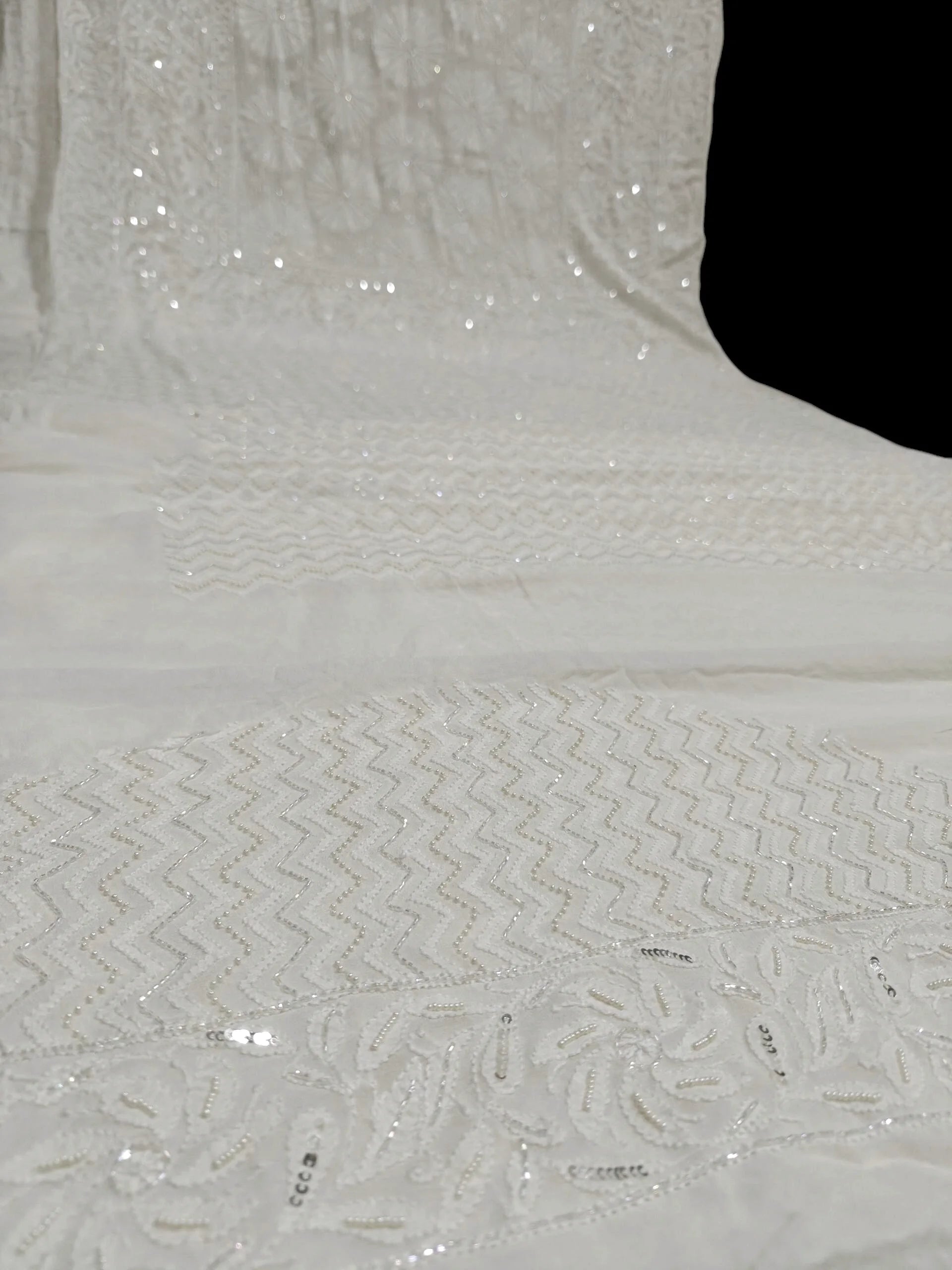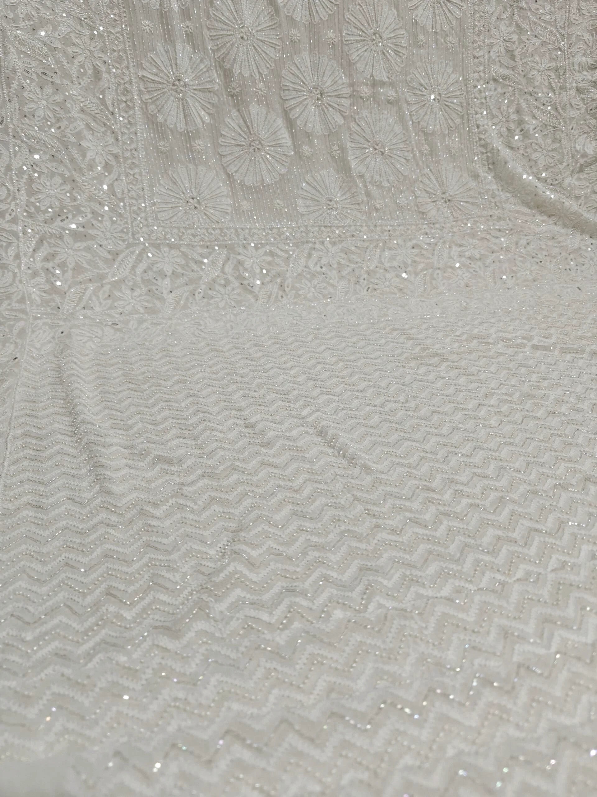 Ivory Georgette Chikankari Saree with Radiant Floral Embellishments
