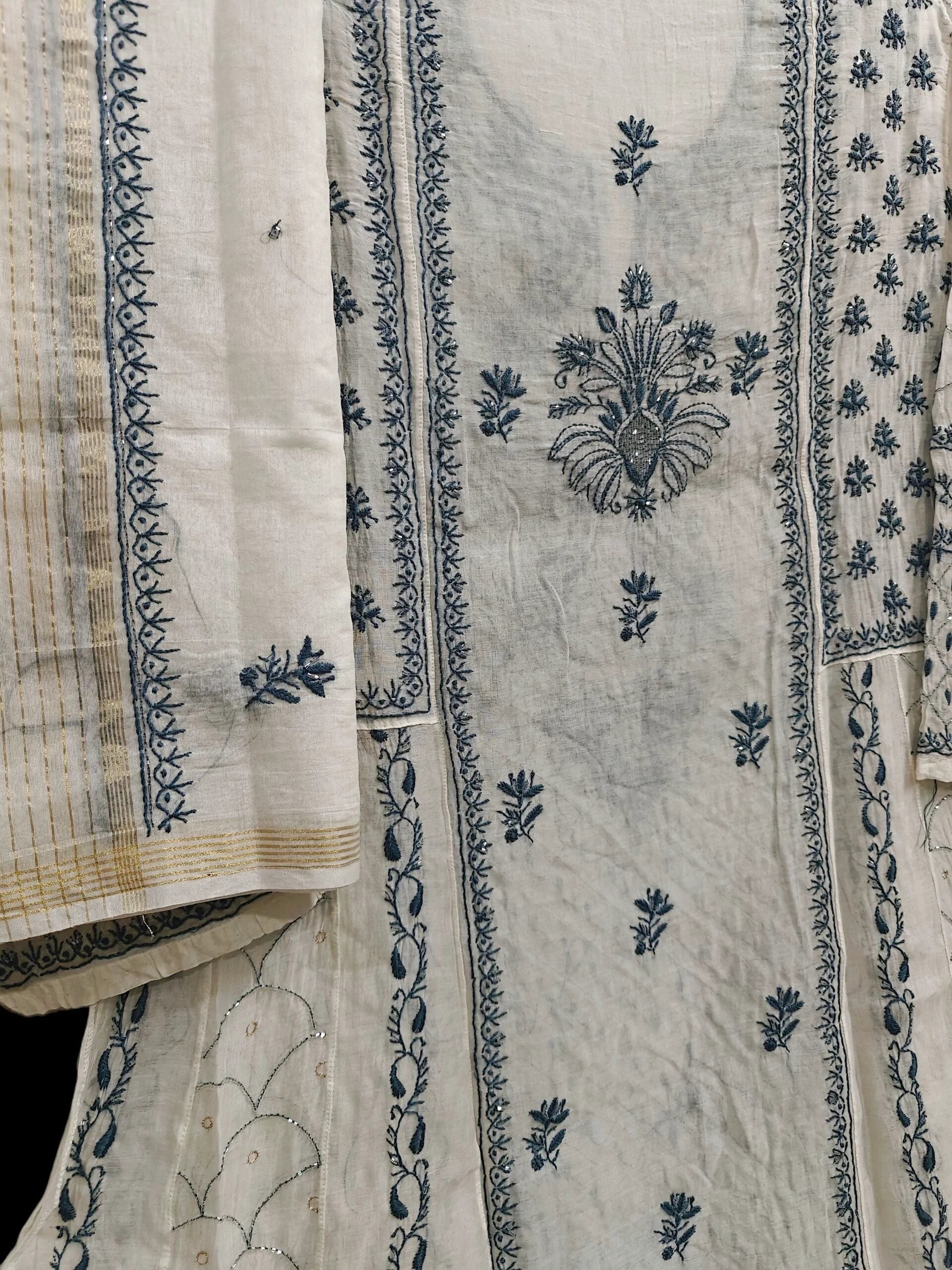 Embroidery: Handcrafted Chikankari work with Moti Cut Dana embellishments | Heavy Anarkali