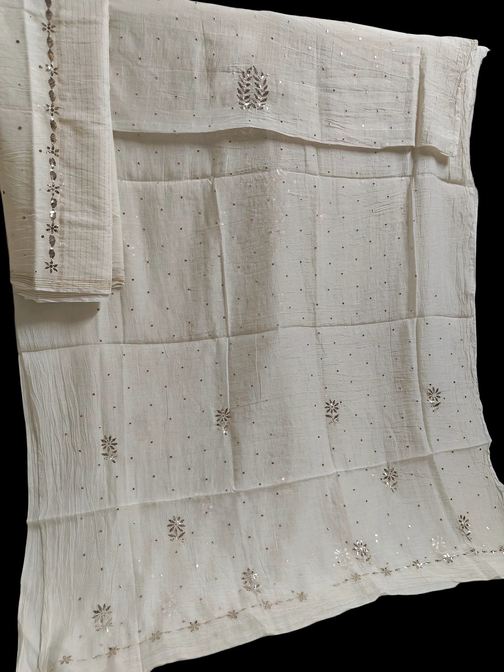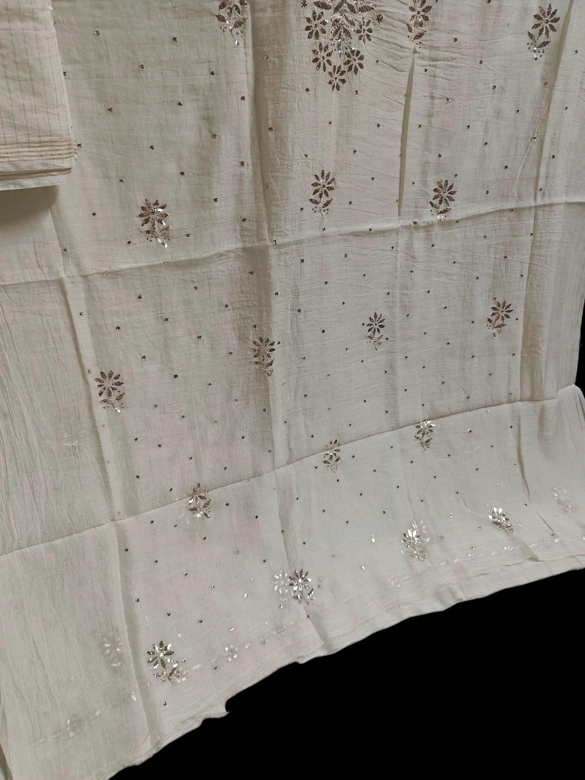 Intricate Mukesh Kamdani Suit with Dupatta – Un-Stitched | Pure Mul Fabric