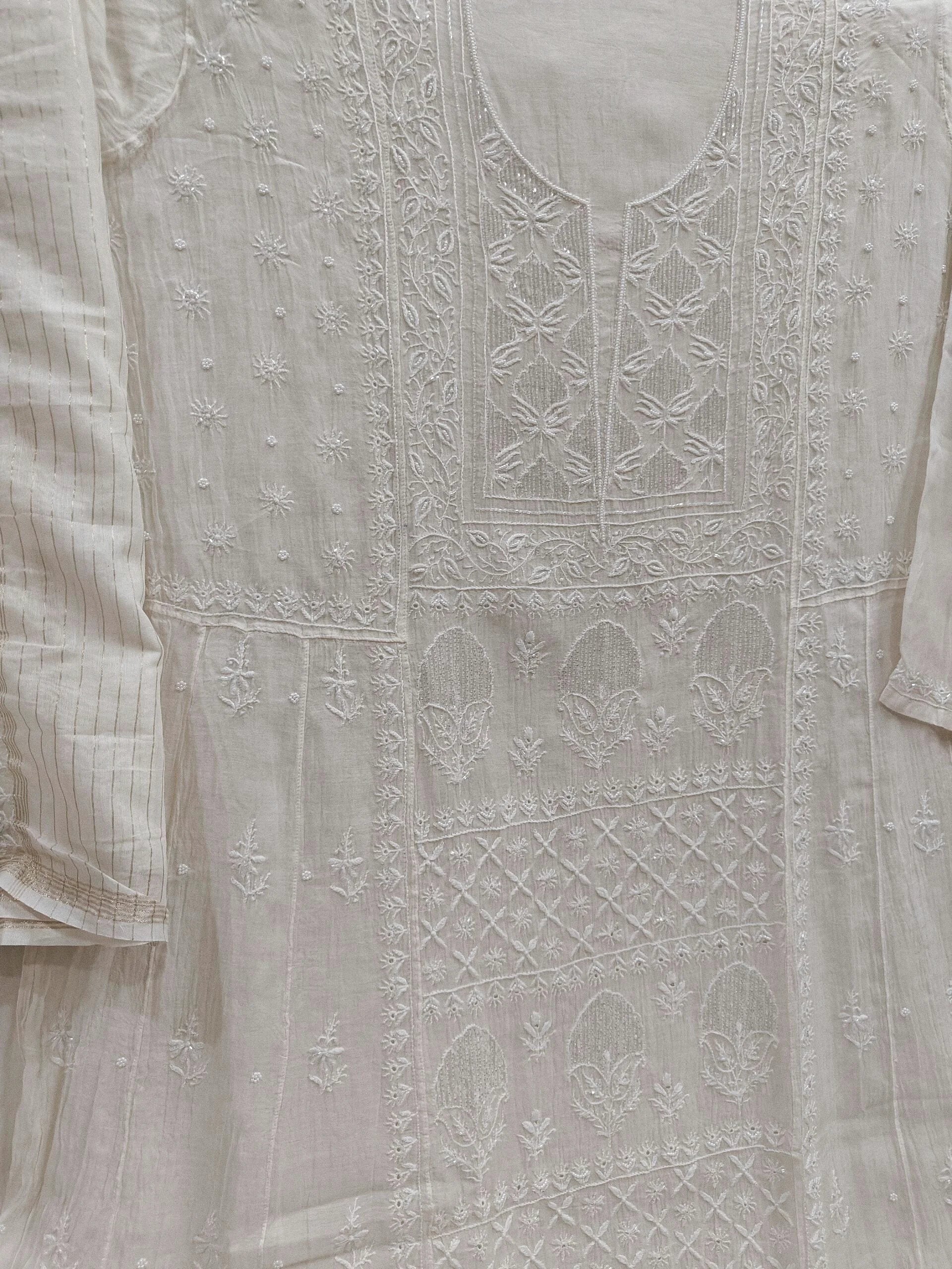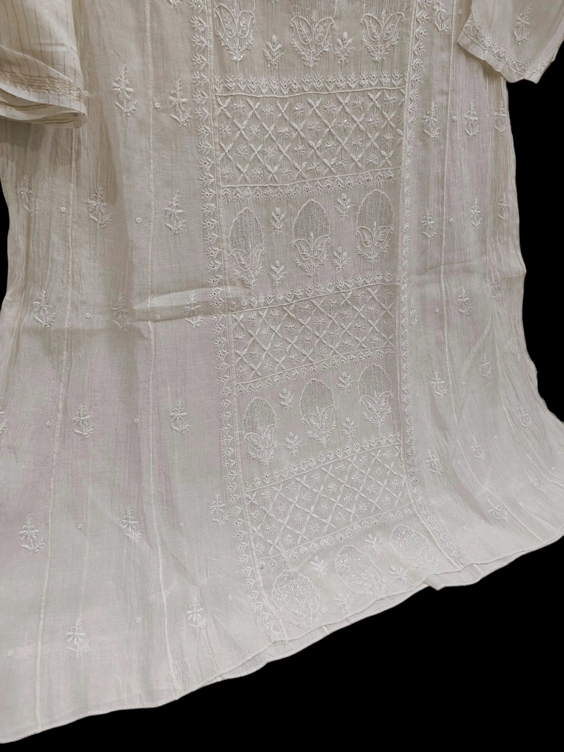 Embroidery: Handcrafted Chikankari work with detailed Moti Cut Dana embellishments