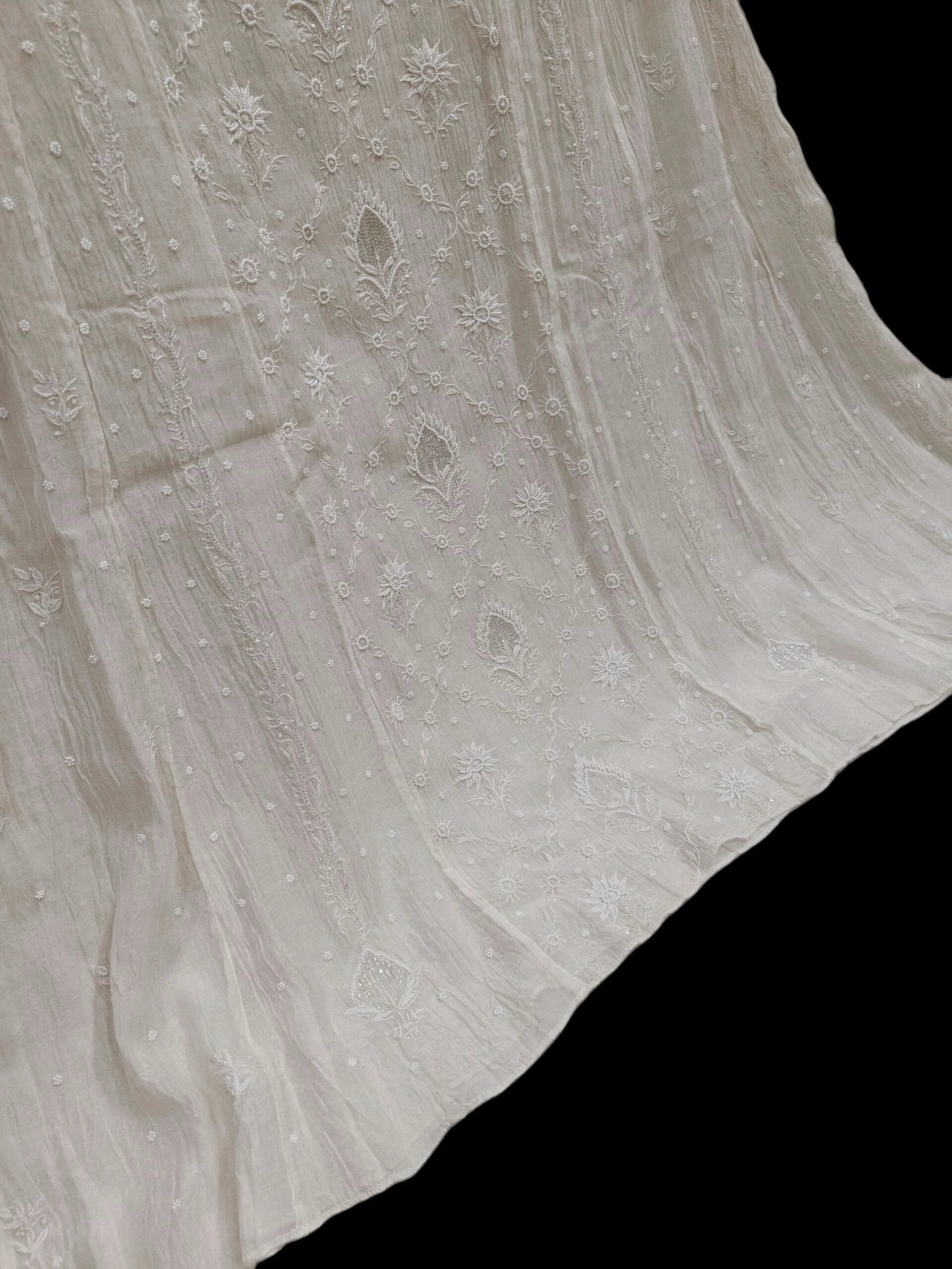 Embroidery: Handcrafted Chikankari work with detailed Moti Cut Dana embellishments